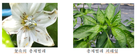 ○ 총채벌레는 즙액을 빨아먹어 직접 피해를 줌