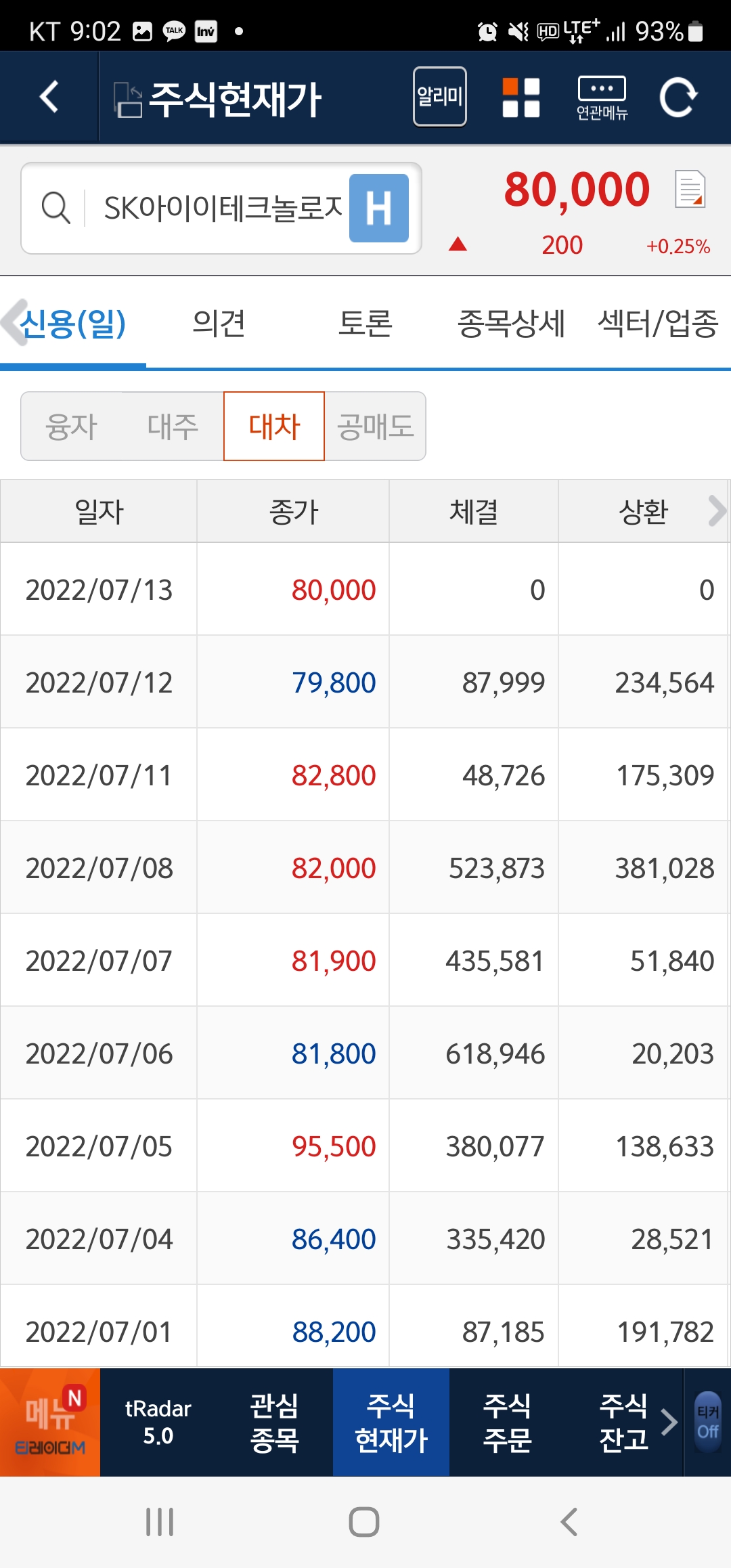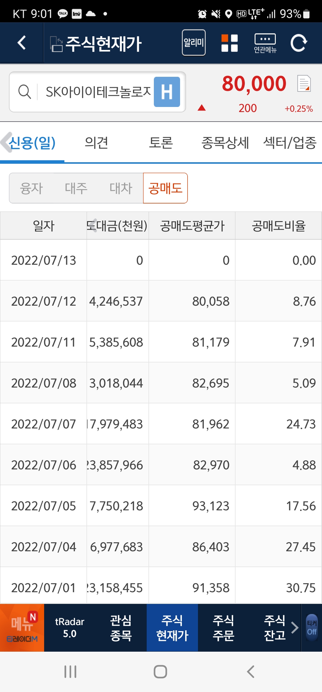 이때 1차 상환 고민을 했습니다. 하지만 인간은 같은 실수를 반복하는 법... 욕심을 냈습니다. (한샘에서는 안 난 욕심이 왜 여기서는 났을까요...) 공매도 비율도 줄어들고 있었는데 욕심부려서 상환하지 않았습니다. (결국 8만 후반대에 상환하게 됩니다.) 기록적으로 30% 수익률을 달성하고 싶었습니다. 그냥 개인적인 기록이지요. 별 의미없는. 하지만 그 수치에 집착해서 상환 기회를 날려버리고, 수익률도 15%가까히 날리게 됩니다.