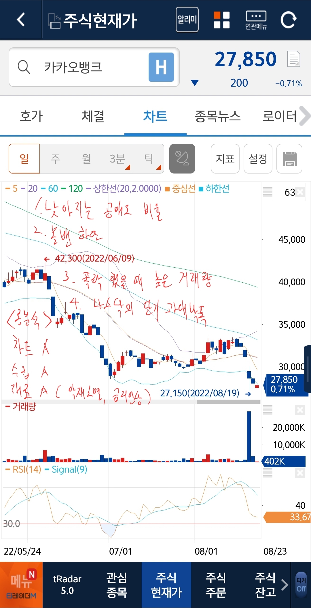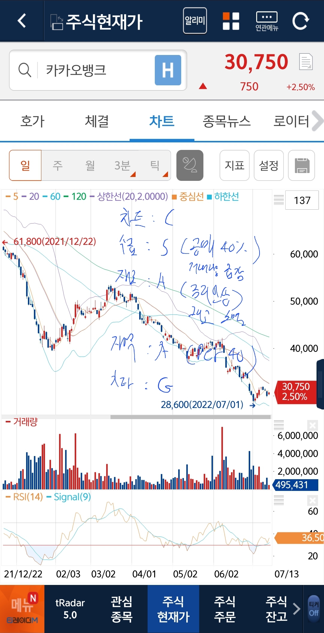 이제 말딸(우마무스메)의 영향을 받아 등급으로 정리하기 시작했습니다. 이때부터 카카오뱅크 공매도를 시작했습니다. 물론 이건 장 마감 후라 다음날 더 올랐을 때 공매도 포지션 잡았습니다.