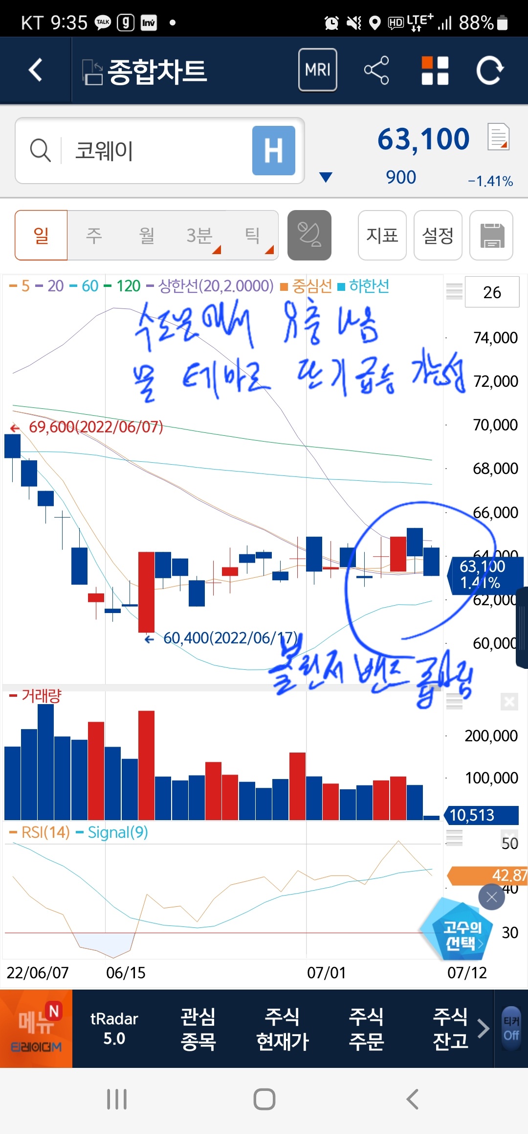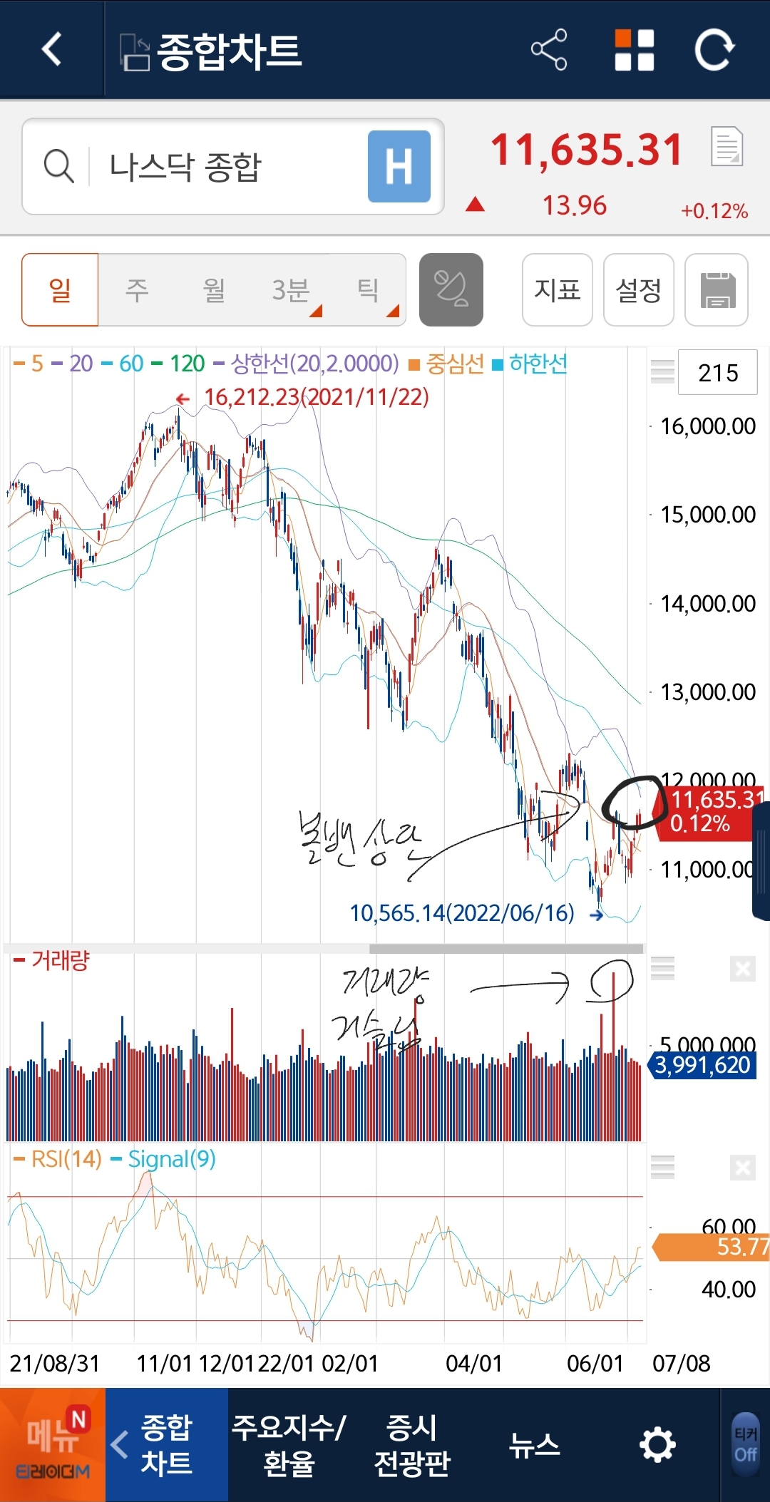 이때도 거래량이 갑자기 높아진 것이 거슬렸나봅니다. 그래서 적어도 볼밴 상단까지는 올라간다고 생각했었습니다. 현실은 볼밴 뚫고 갔지만요.