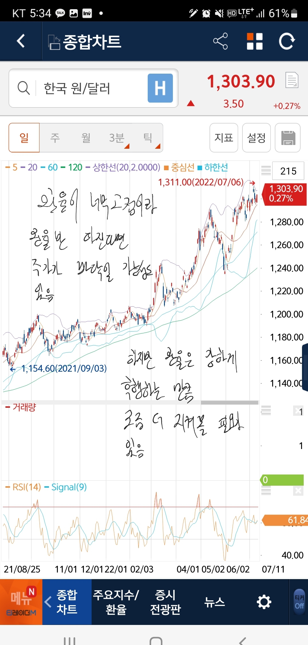 마찬가지로 환율이 단기 고점이라 코스피가 상승할 가능성이 있다고 생각했었습니다.