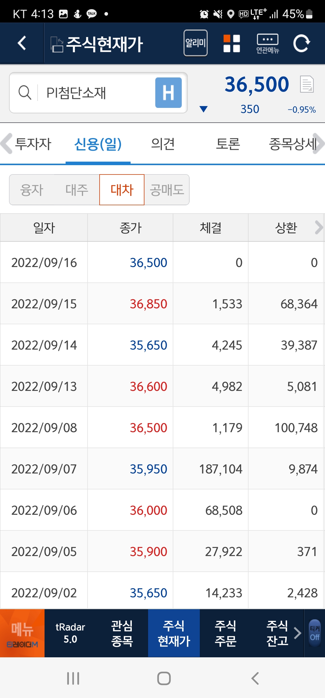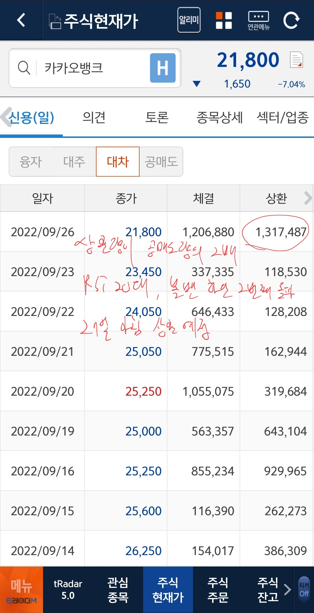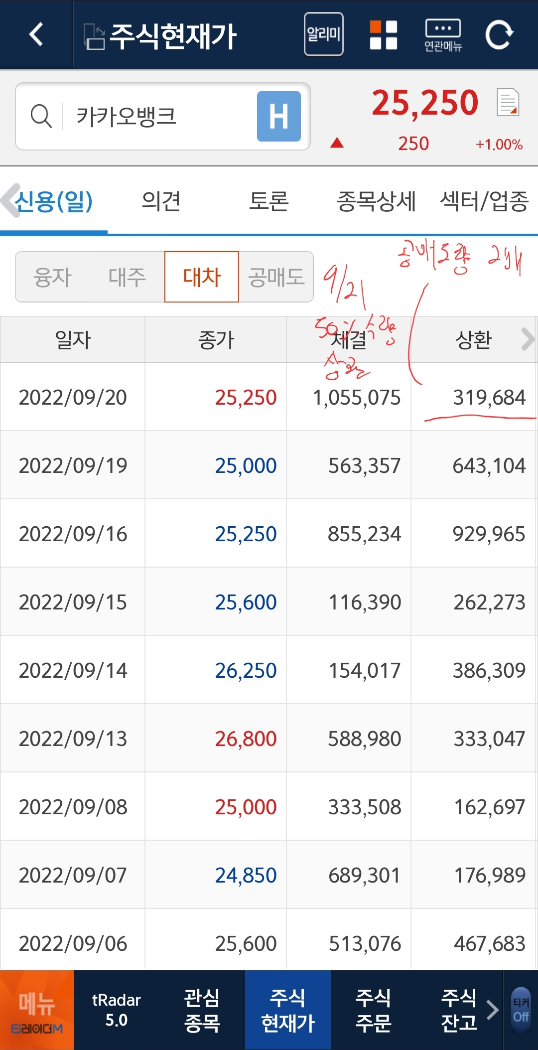 카뱅은 또 한 번 폭락과 함께 대규모 상환이 이루어졌습니다. 그래서 저도 이 때 상환했는데, 섣부른 판단이었습니다. 추가적으로 계속 폭락하더군요. 아무래도 기초도 허접하고, 카카오페이와 나눠져 있는 것도 성장에 제한이 되니 그런 것 같습니다. 이런 종목은 상환물량과 관계 없이 공매도 물량에만 집중해야 한다는 사실을 배웠습니다.