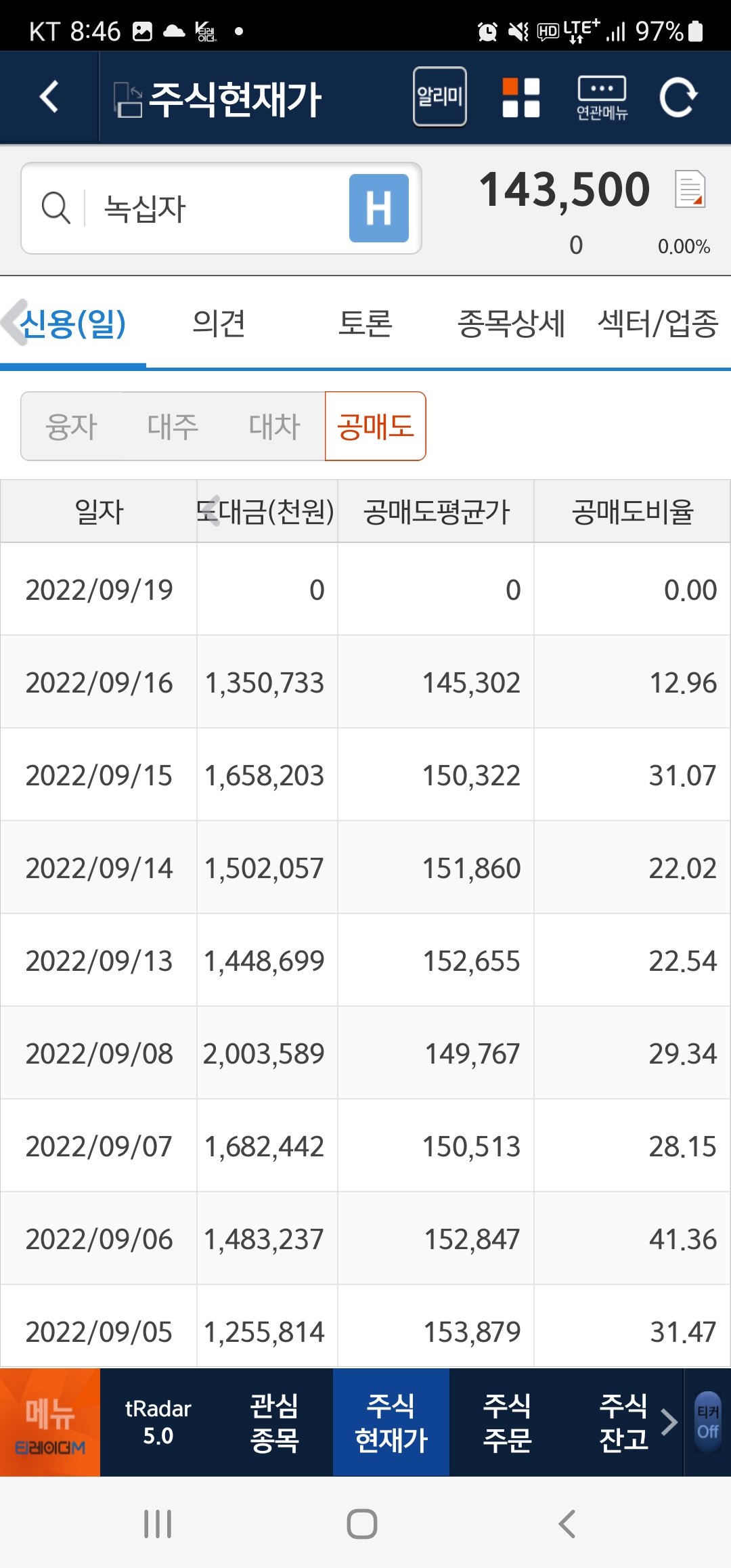 갑자기 공매도량이 늘어나고 차트가 마음에 들어서 공매도 들어갔습니다.