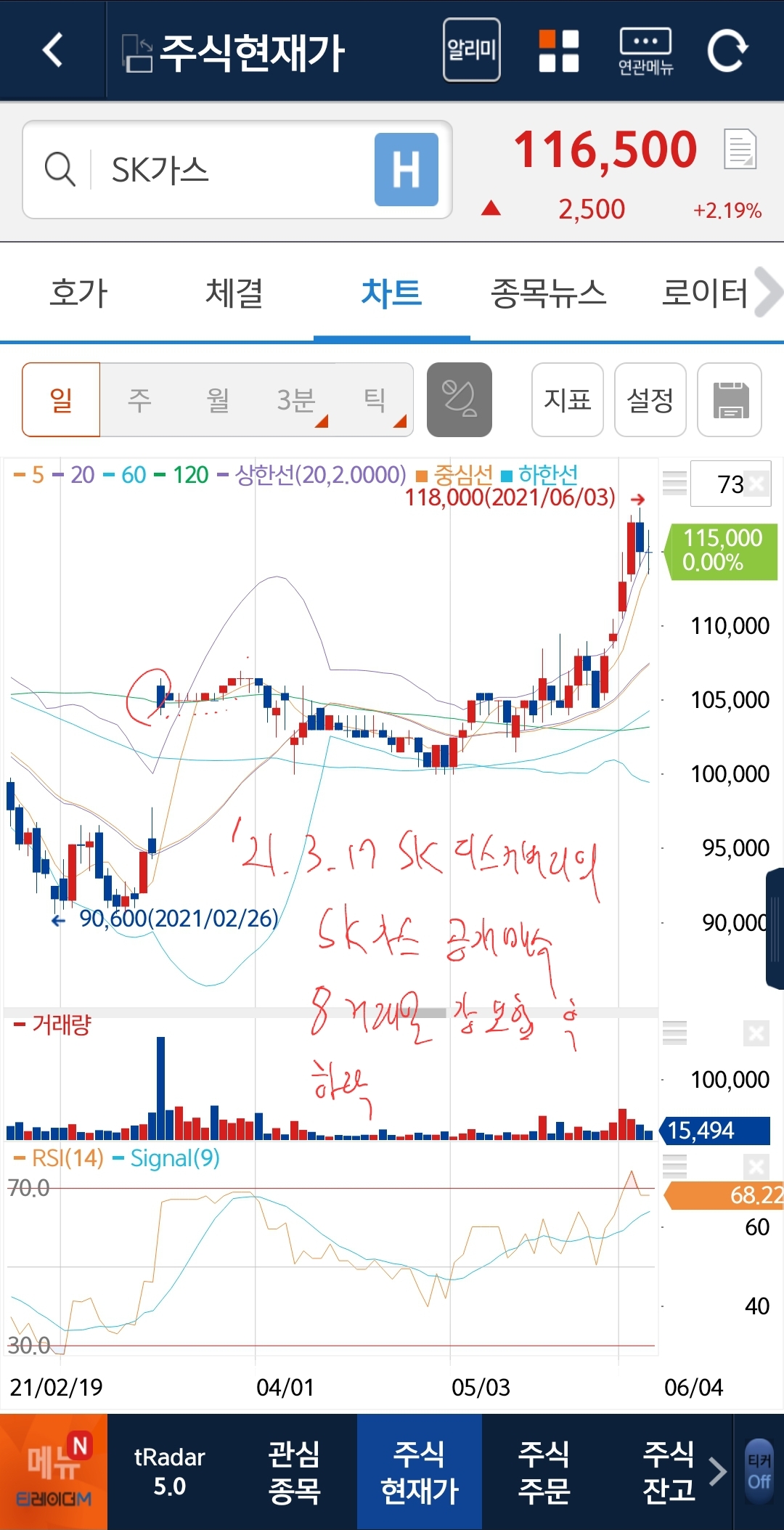 계속 오르고, 함께 공매도 쳤던 세력님들이 손절하는 꼴을 보고 저도 같이 손절했습니다. 게다가 거래량도 폭증해서 쉽게 내려올 거라 생각 안 했습니다.