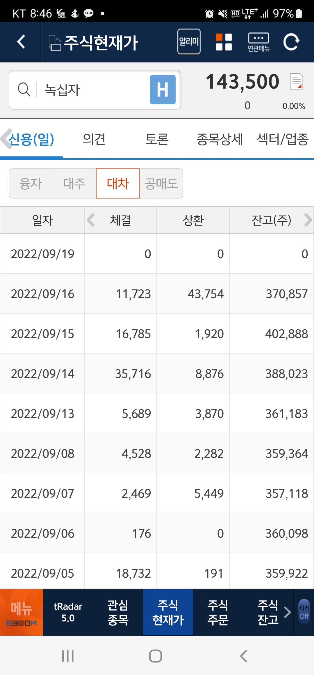 이때 이미 공매도 포지션으로 되어 있었는데, 상환물량이 지속적으로 늘어나자 50% 먼저 저도 상환했습니다. (괜히 했습니다.)