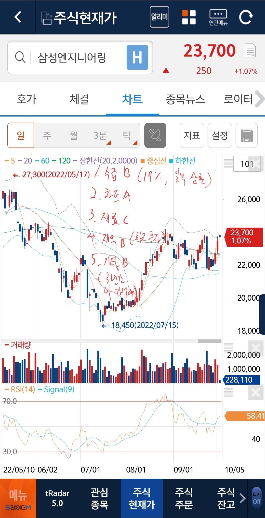 새롭게 공매도 비율이 높아지고 있는 삼성엔지니어링에 일부 포지션을 잡았습니다.