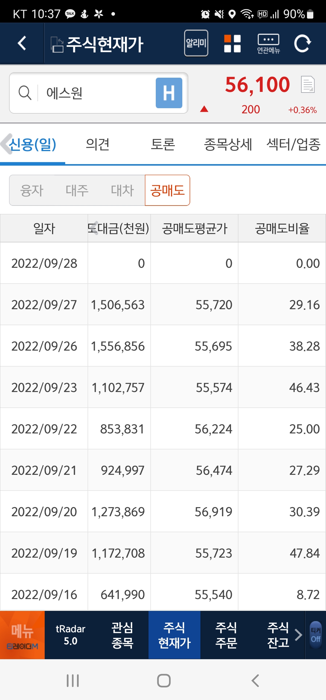 그리고 최근들어 에스원이 공매도 비율이 심상치 않았습니다. 워낙 거래량 자체가 없다보니 공매도 비율이 상대적으로 높아 보이는 효과 같기도 하지만, 일단 수치상 높으니 너무 먹음직했습니다.