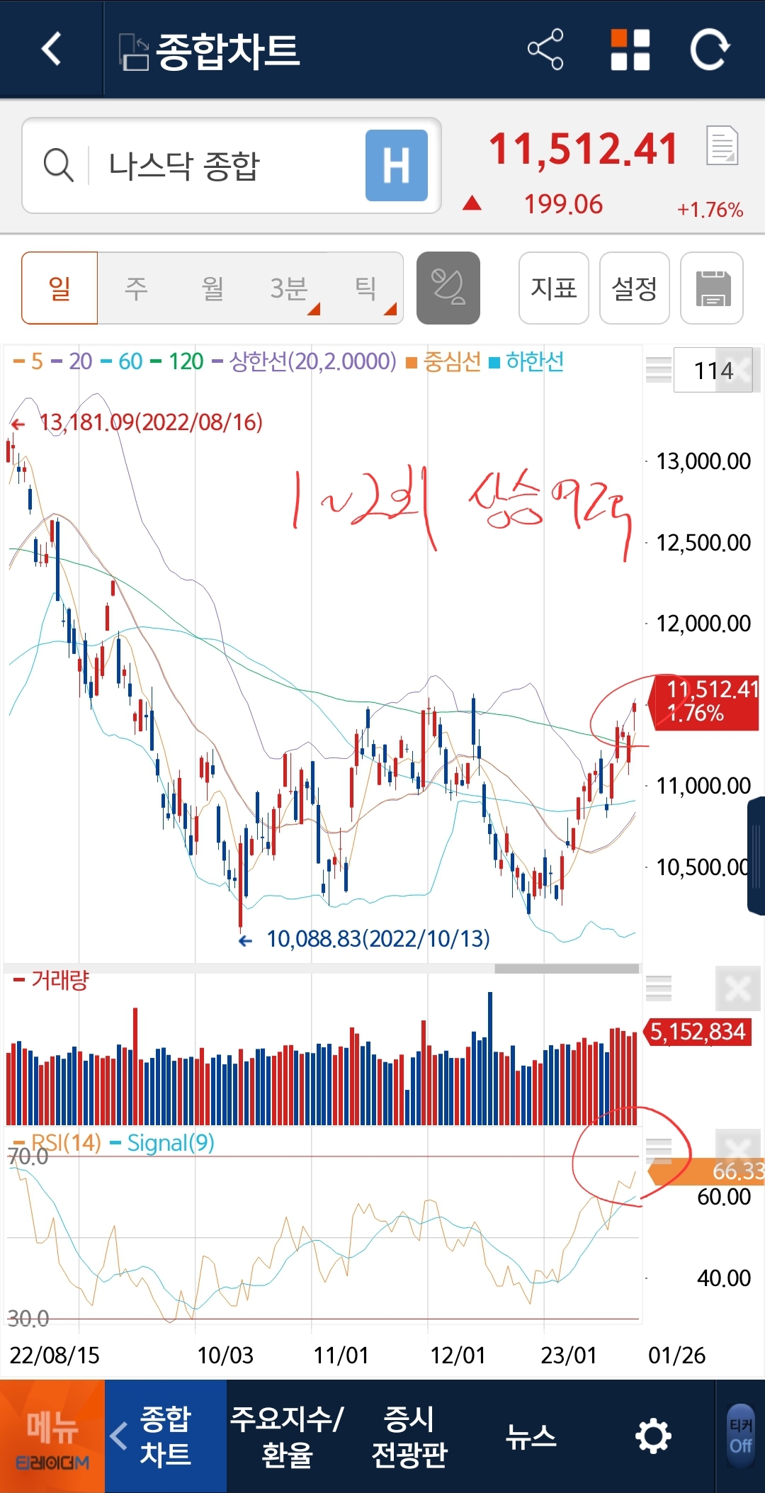 종합지수라서 높은 RSI를 지속적으로 가져가는 경우는 정말 거의 없습니다. 또 그만큼 가져가려면 금리인하나, 글로벌 경제 호황 같은 S급 뉴스(재료)가 필요하기도 합니다. 현재 상황에서 S급 뉴스가 될 만한 것은 우크라이나 전쟁 종료입니다. 하지만 미군과 독일이 탱크를 지원해주면서 더 과열되는 양상입니다.